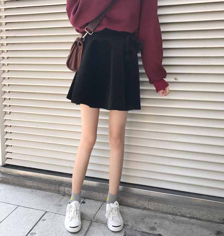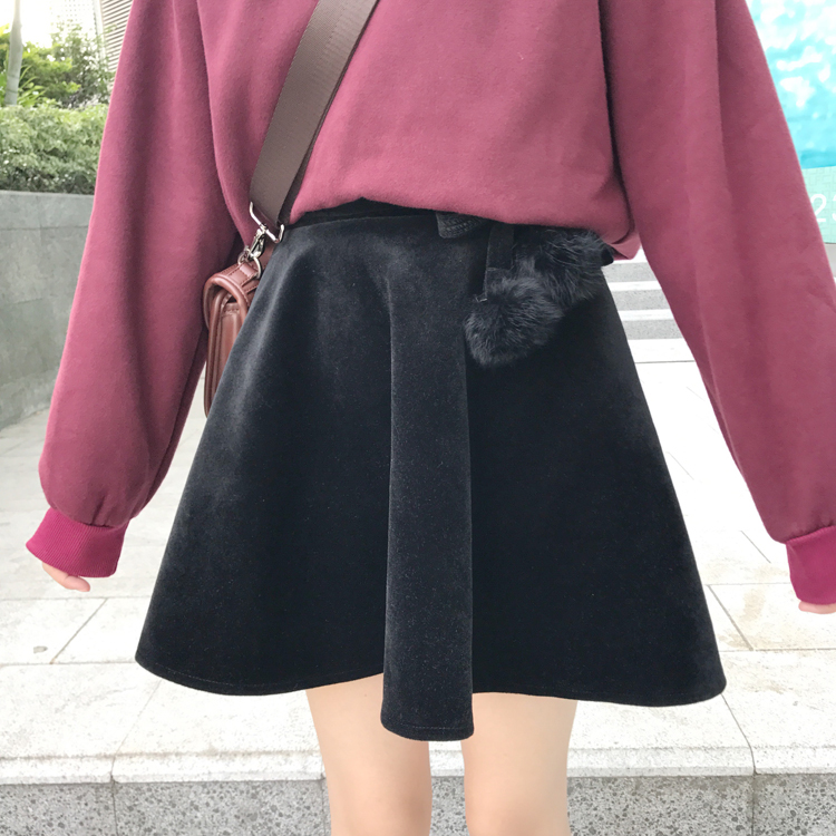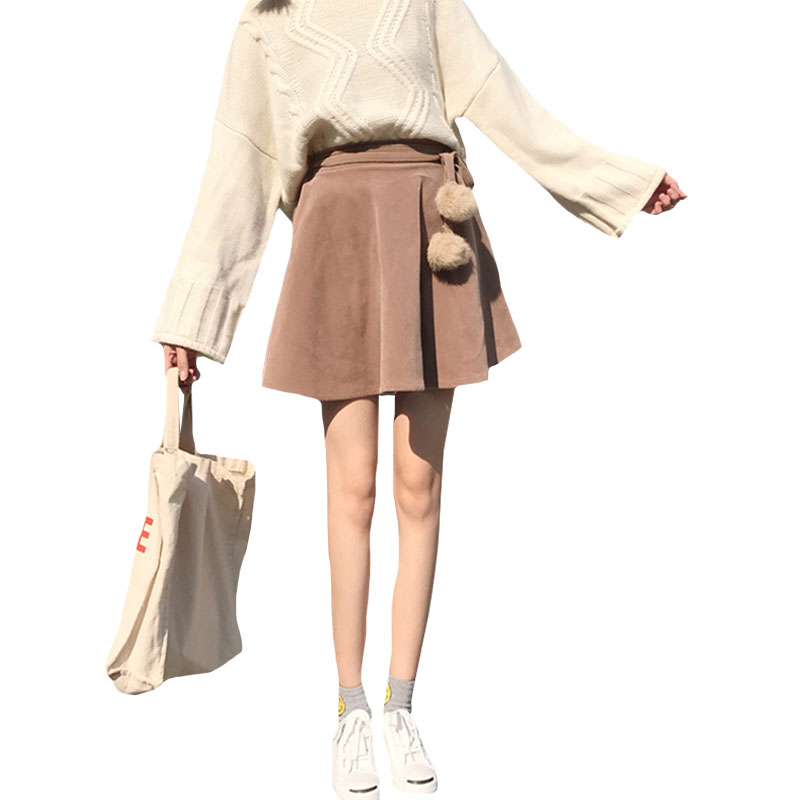 / 秋冬韓版寬松毛球系帶毛呢半身裙高腰a字裙女防走光短裙學生裙子