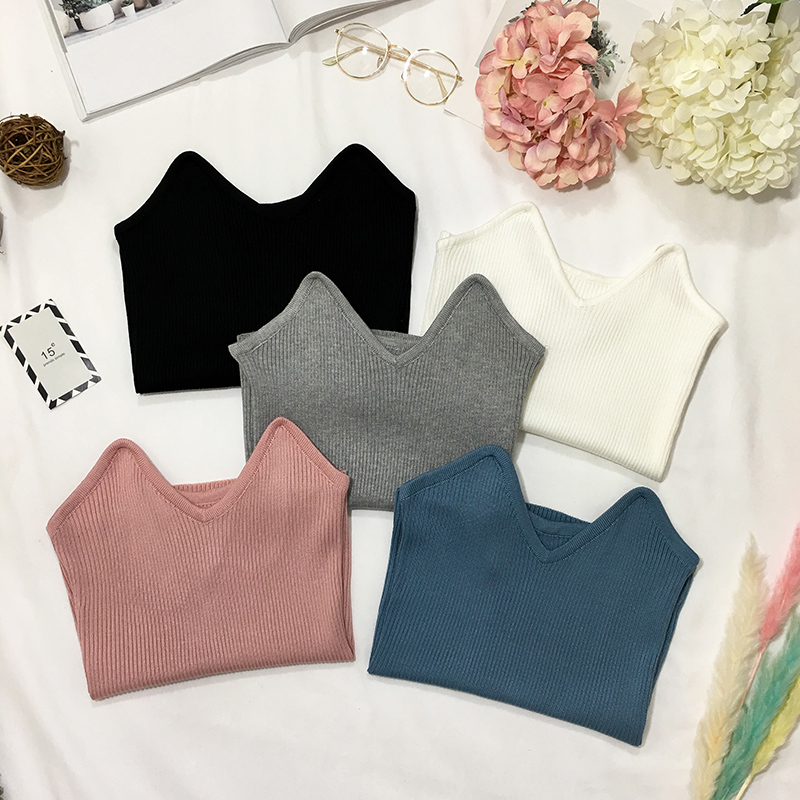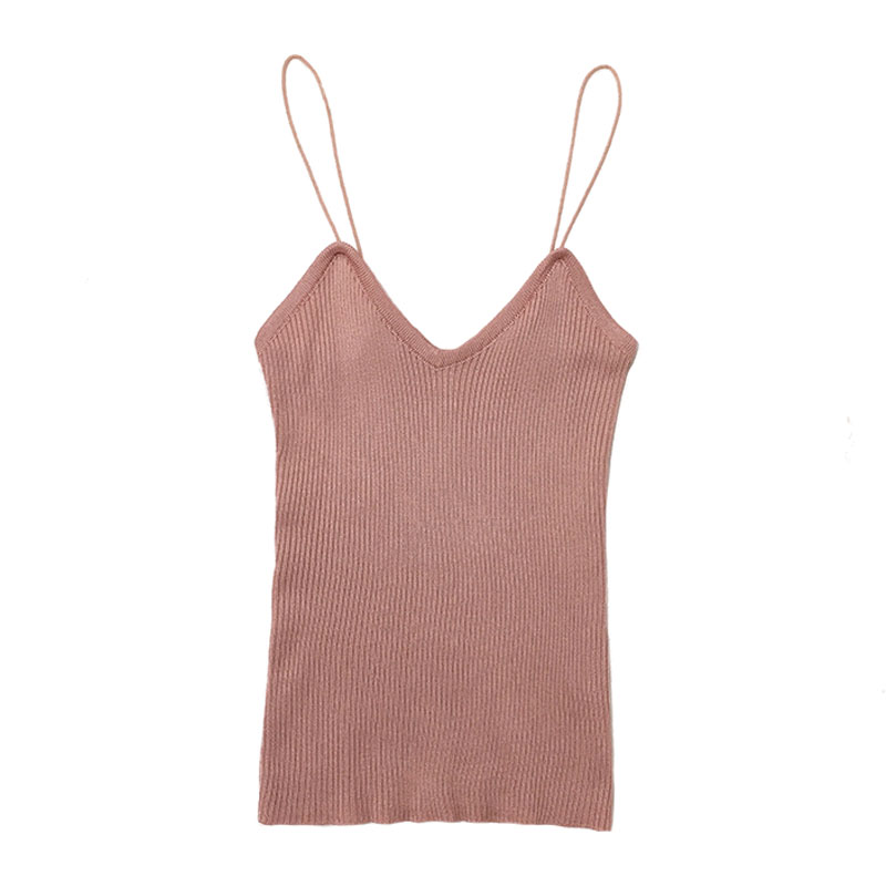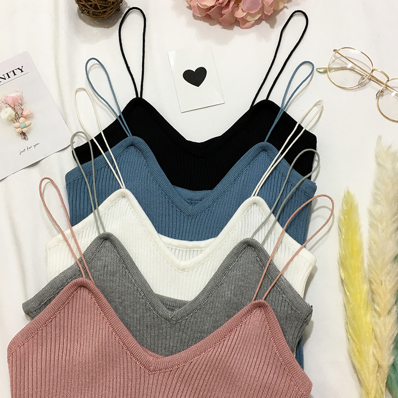 / 春季韓版V領修身細肩帶吊帶打底衫顯瘦外穿無袖針織小背心女上衣