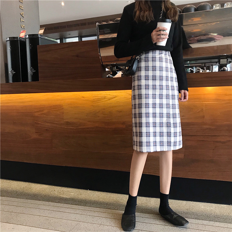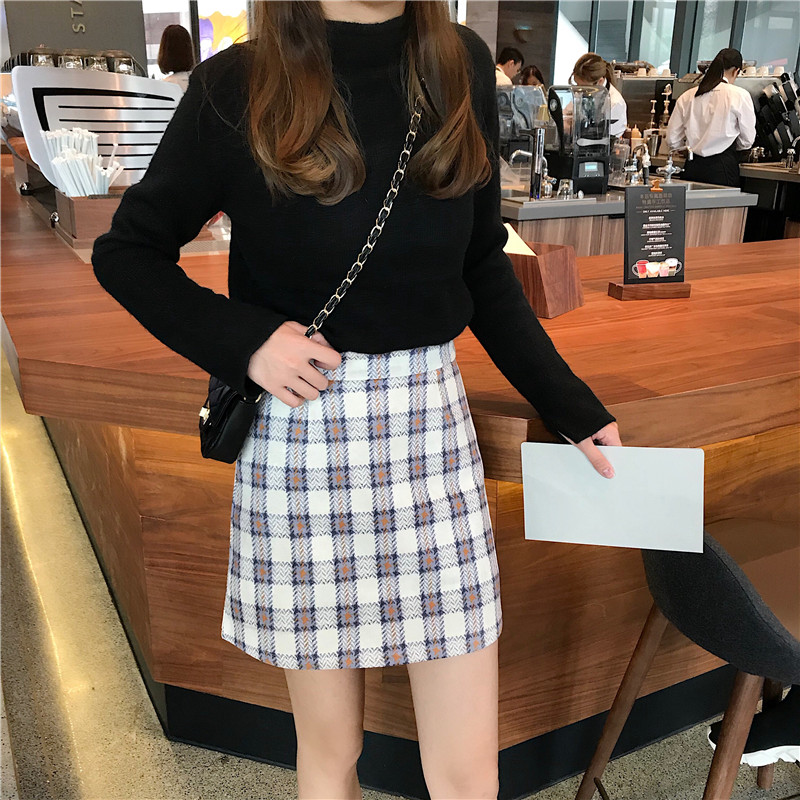 / 秋冬女裝韓版中長款格子chic半身裙包臀裙復古高腰裙子a字裙短裙