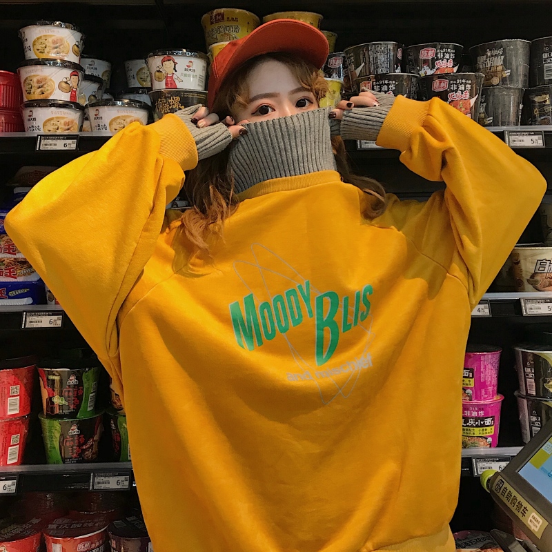 / 2018新款秋冬韓版原宿風寬松字母拼接高領加絨加厚超火衛衣外套女