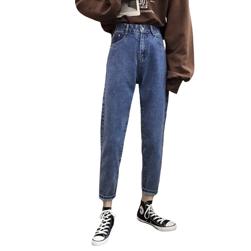 2018新款秋冬韓版寬松顯瘦牛仔褲高腰直筒褲闊腿褲長褲學生褲子女