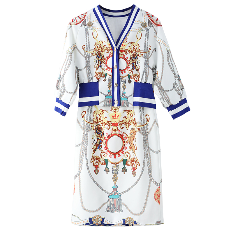 / 名媛氣質2018秋裝新款印花休閑時髦套裝女裝夾克半身裙運動兩件套