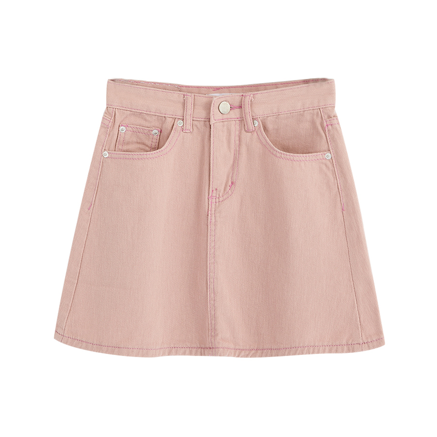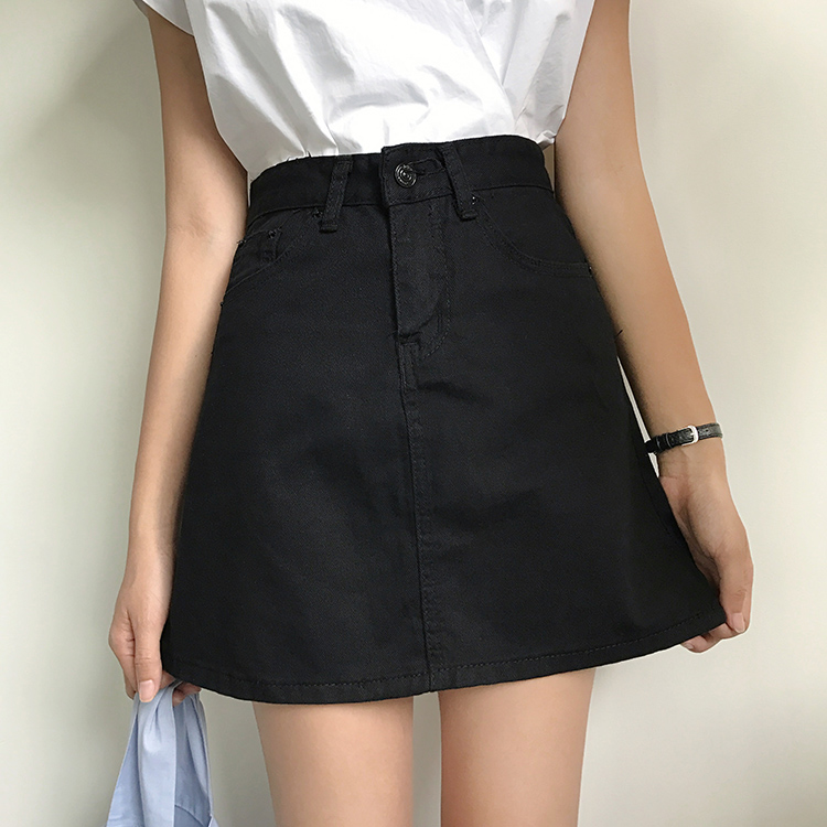 / 早春新款女裝簡約純色高腰修身顯瘦學生百搭牛仔A字半身裙短裙女