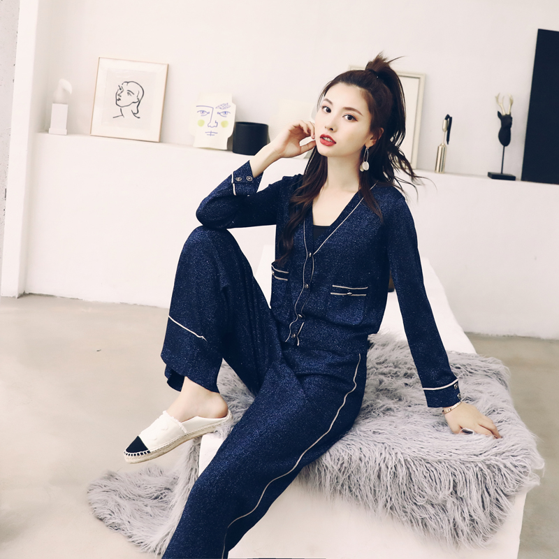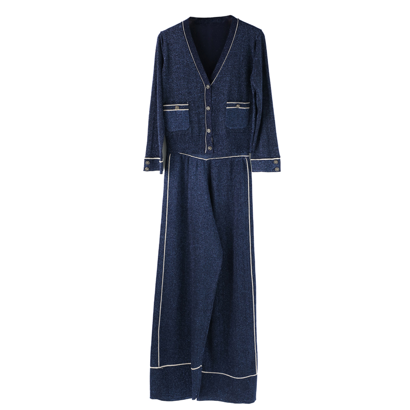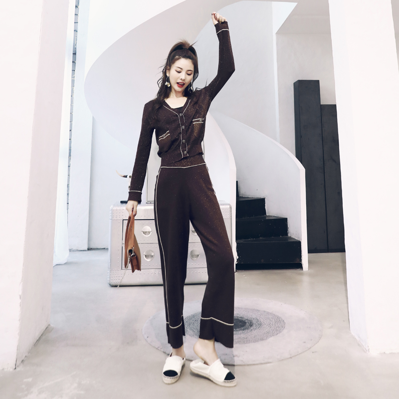 名媛慵懶風套裝時尚初秋季兩件套2018新款秋冬小香網紅針織闊腿褲