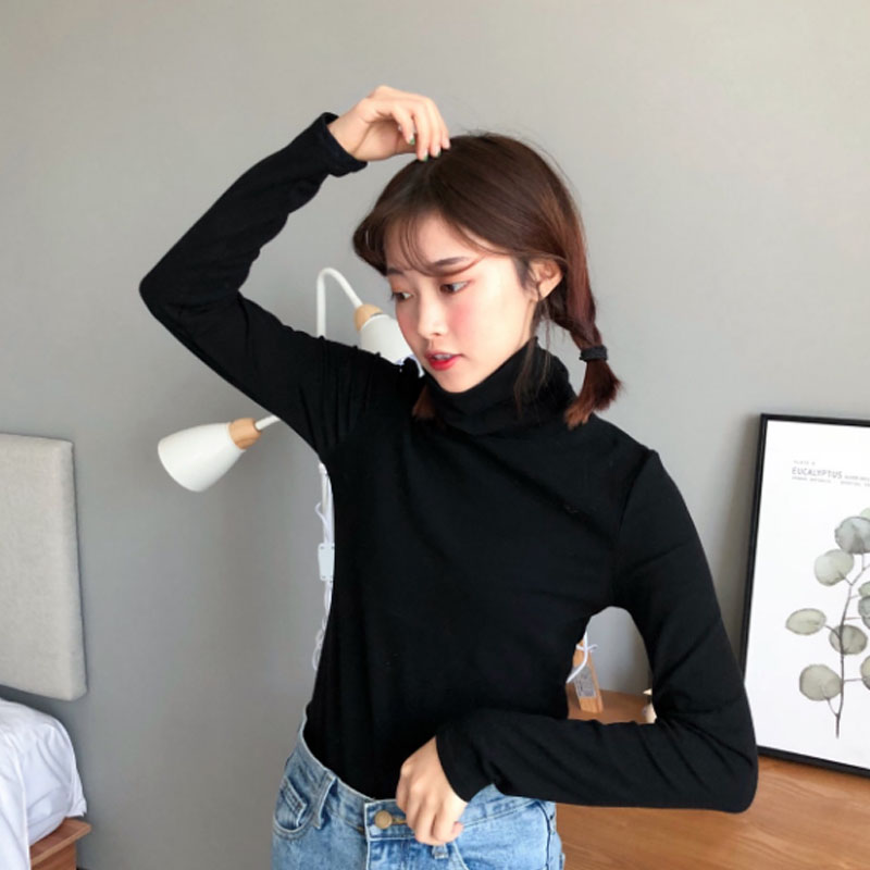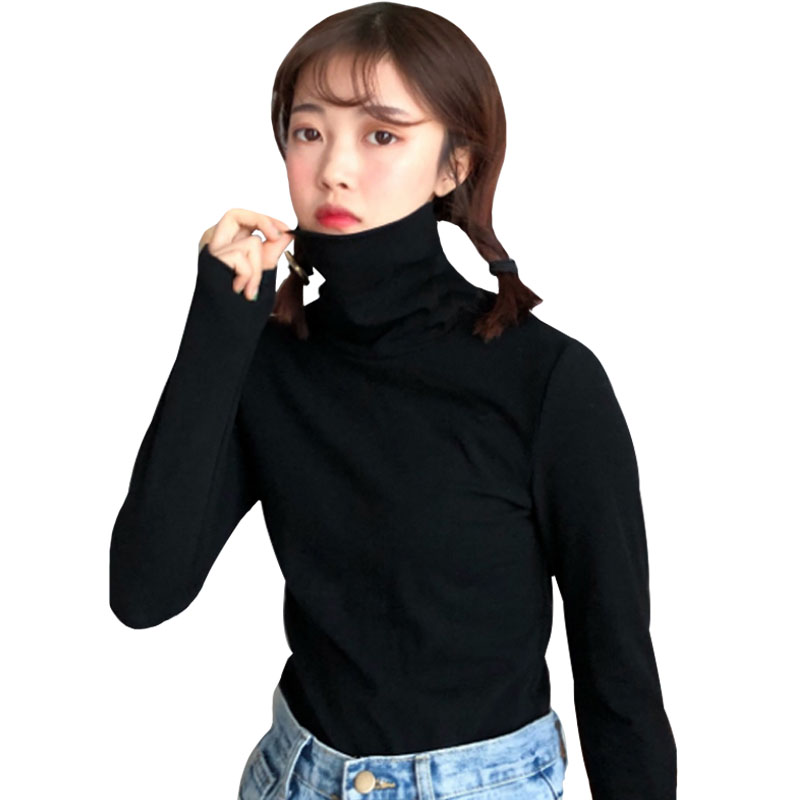 / 秋季女裝韓版氣質純色高領修身顯瘦打底衫學生長袖休閑T恤上衣潮