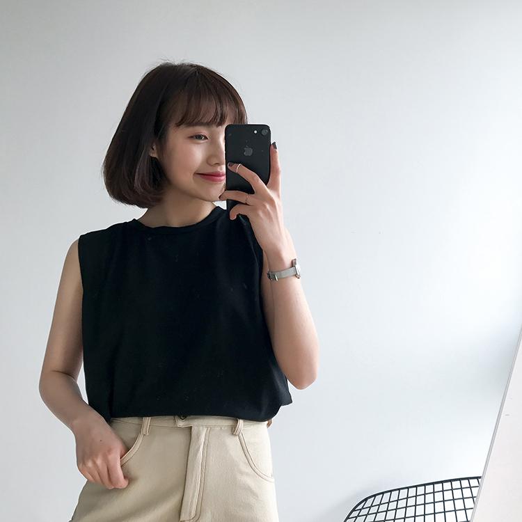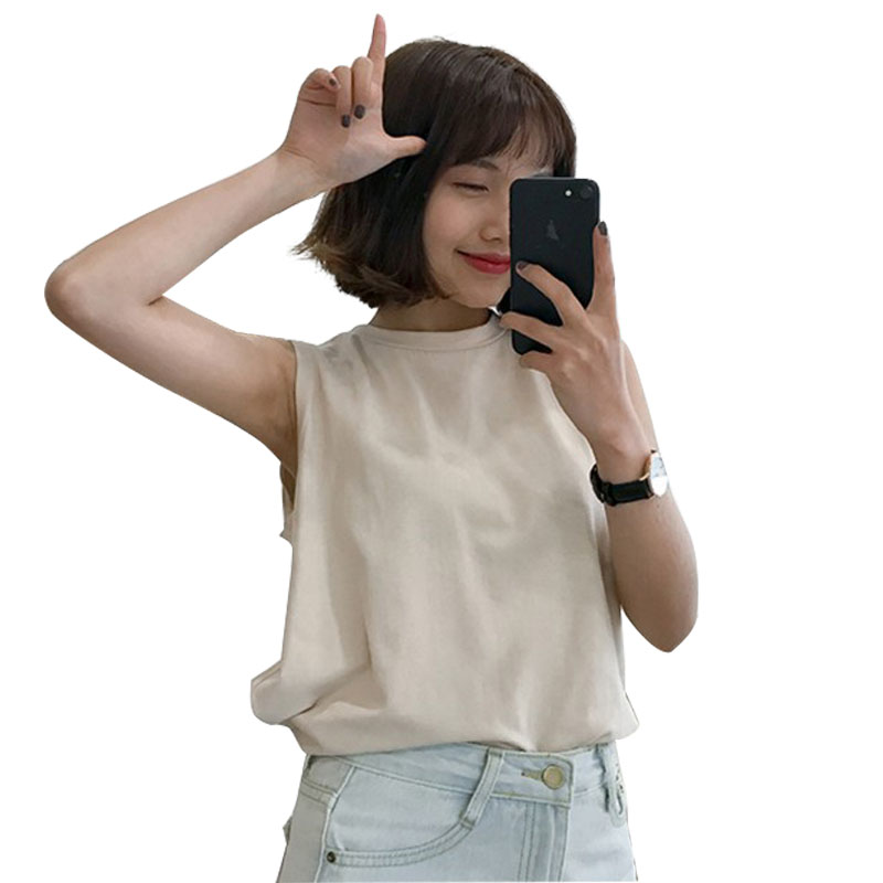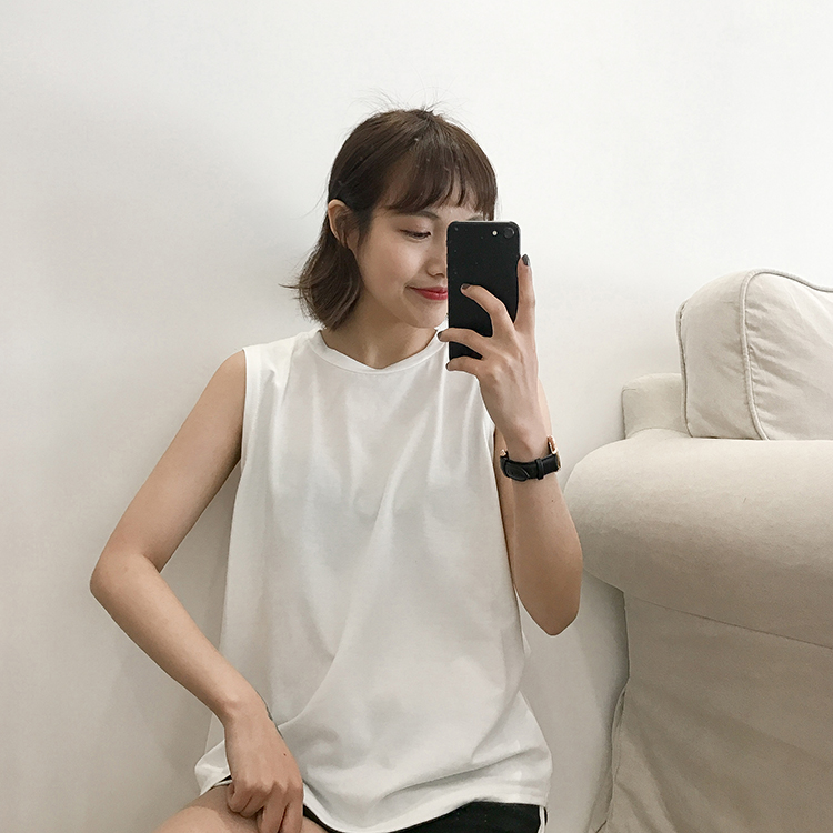 / 春夏女裝新款韓版百搭簡約純色背心無袖T恤學生寬松打底衫上衣潮
