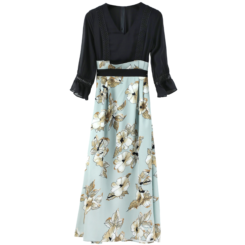 / 中袖拼接連衣裙女中長款2018秋季新款女裝時尚修身收腰chic早秋裙