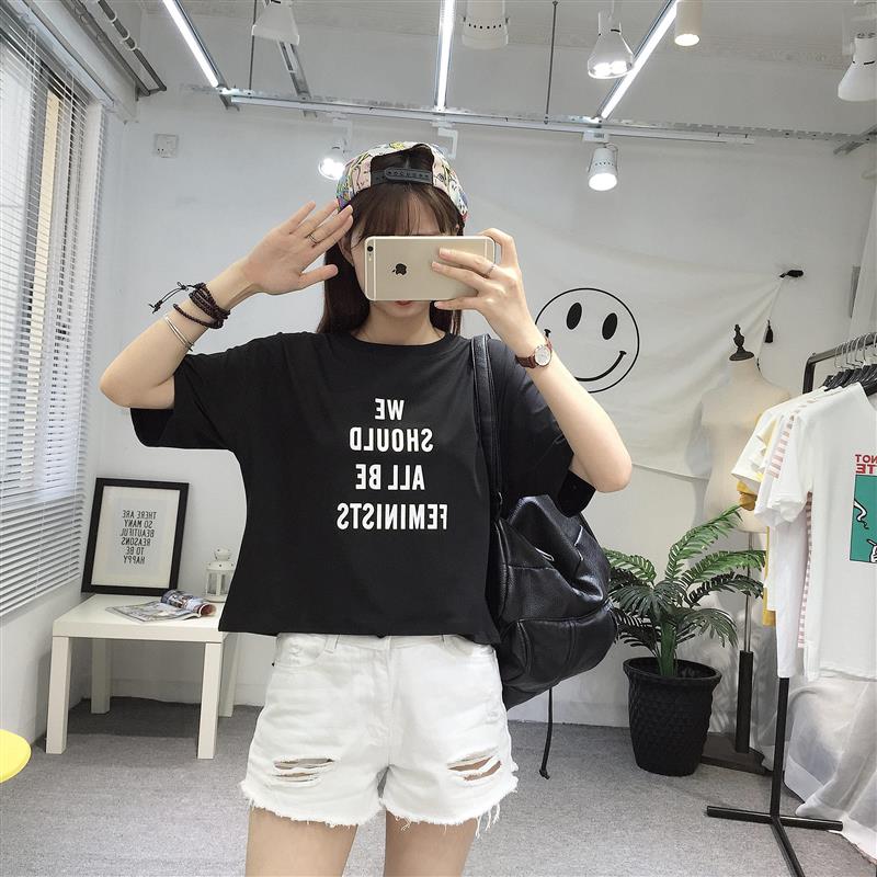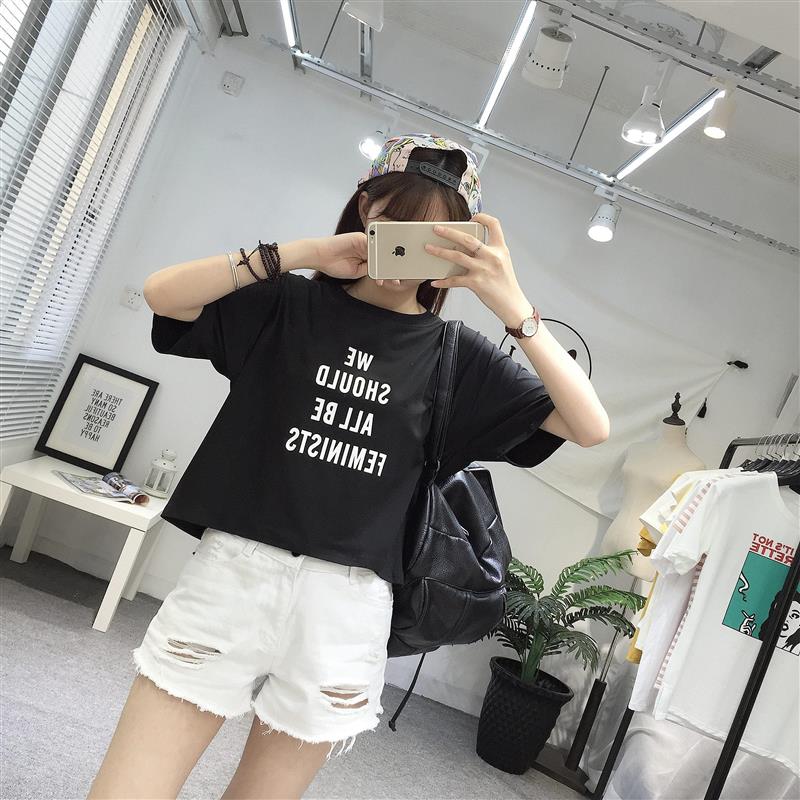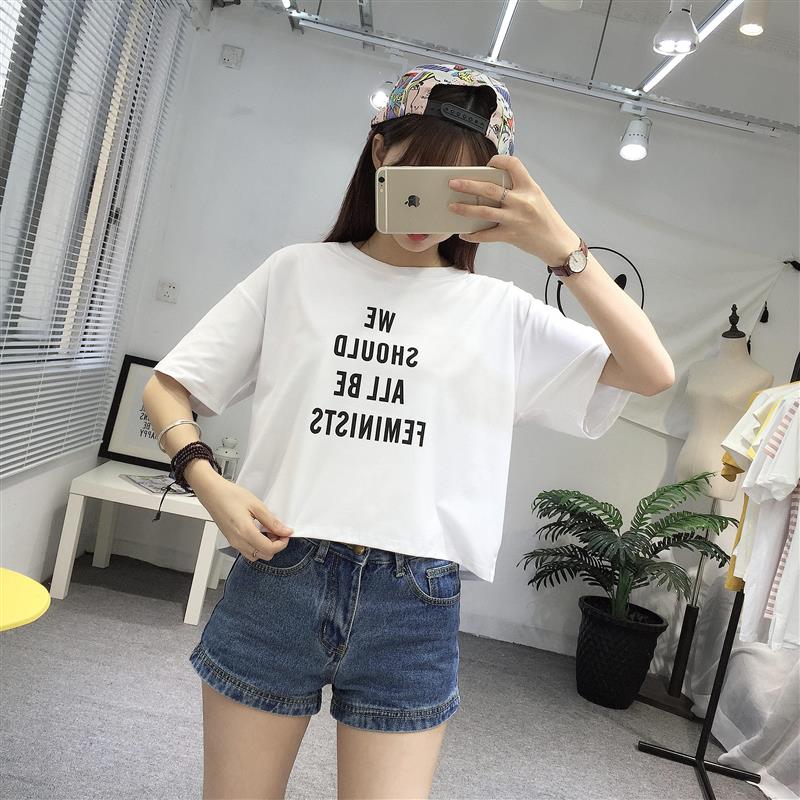 / 早春新款女裝字母印花寬松顯瘦學生百搭短款短袖打底衫T恤上衣女