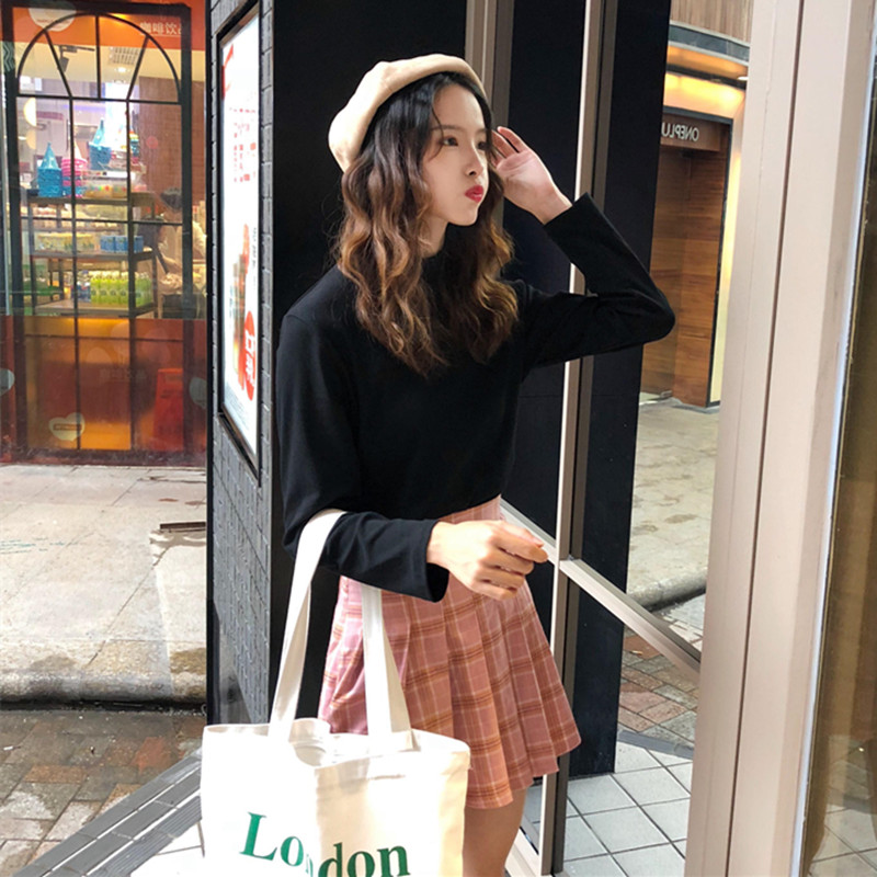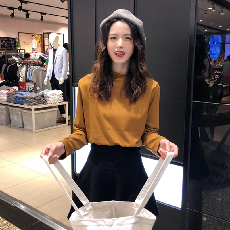 / 秋冬女裝韓版氣質純色修身顯瘦半高領長袖休閑打底衫T恤上衣學生