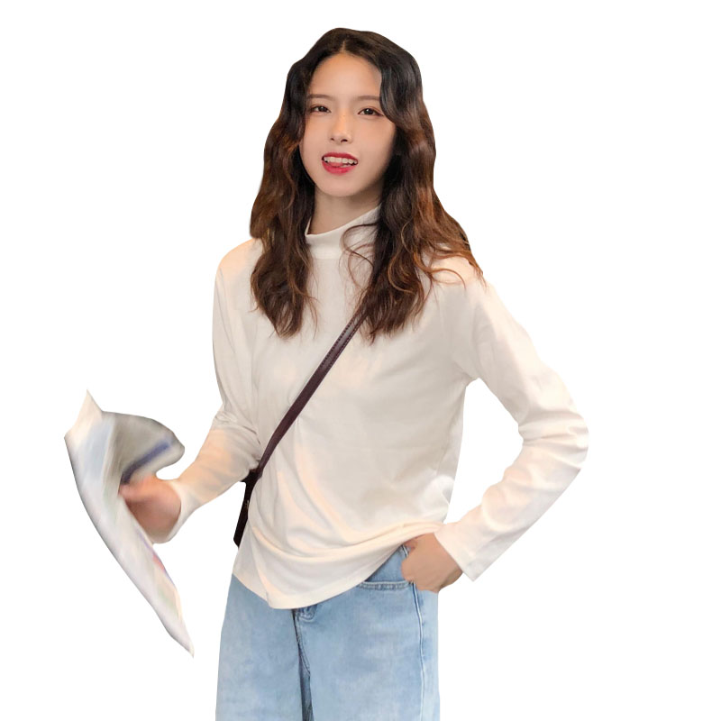 秋冬女裝韓版氣質純色修身顯瘦半高領長袖休閑打底衫T恤上衣學生