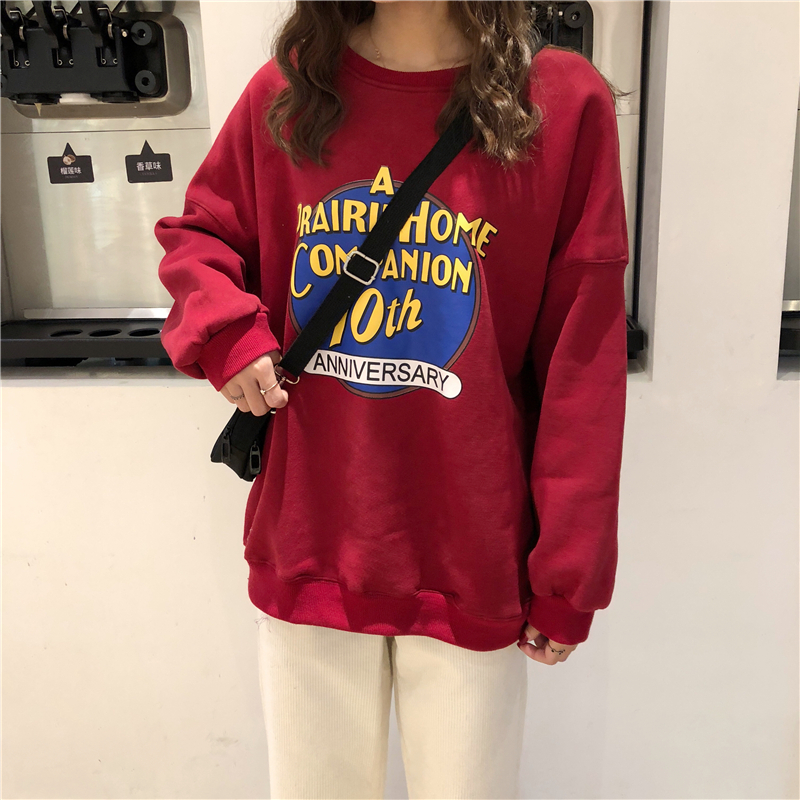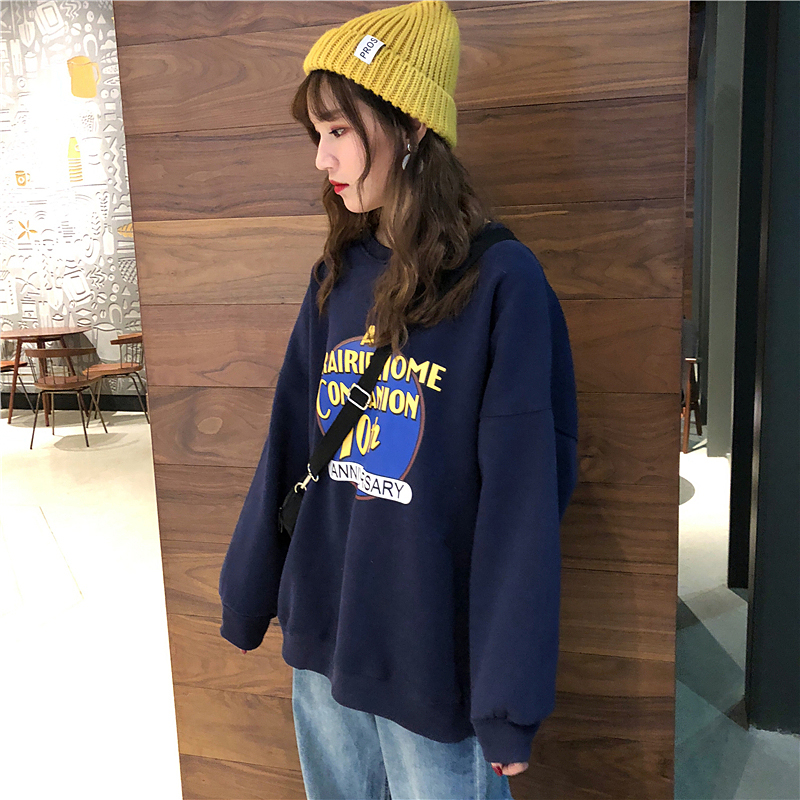 2018新款秋冬韓版原宿風字母寬松加絨加厚套頭超火衛衣上衣外套女
