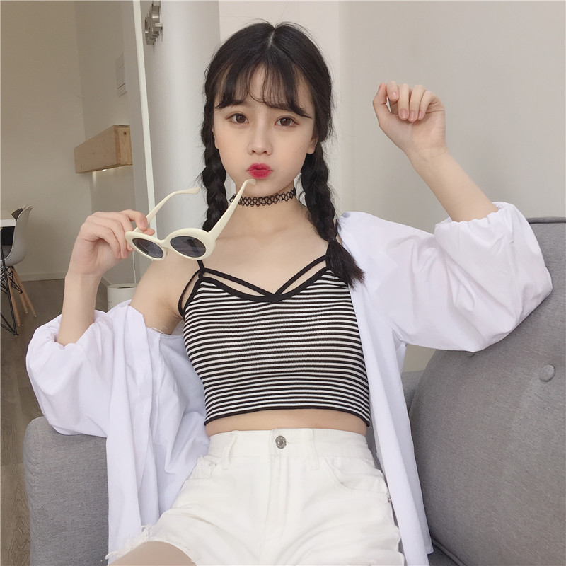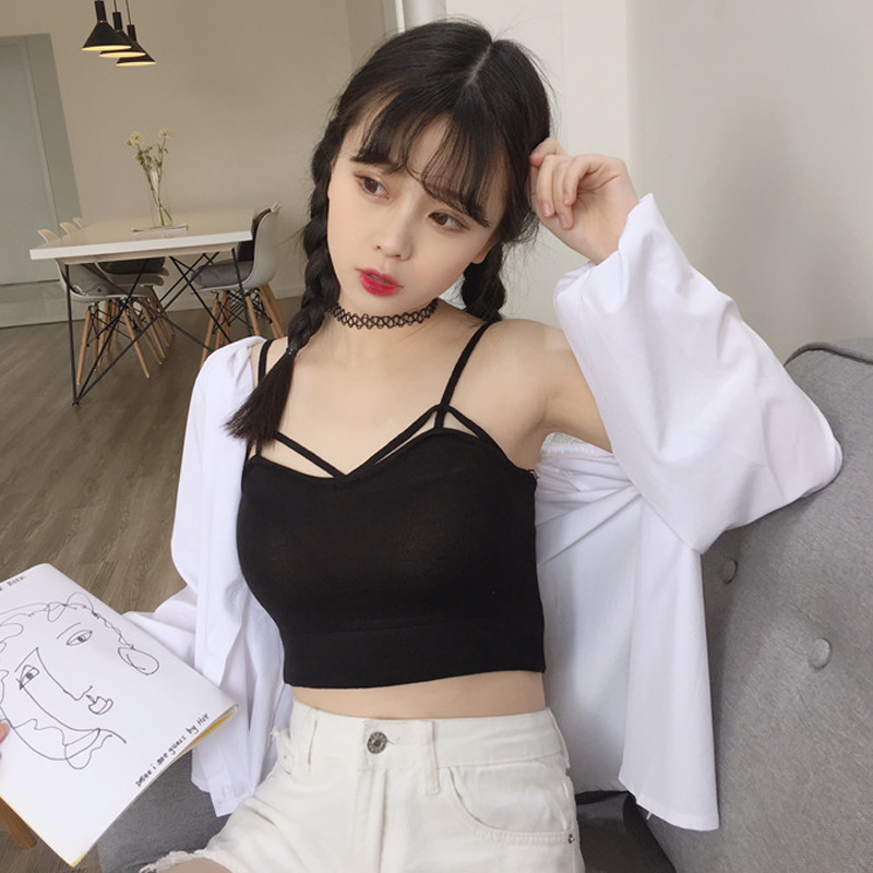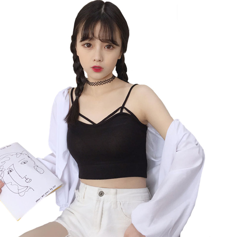 / 春夏女裝韓版性感交叉吊帶小背心露臍超短款抹胸打底衫上衣內搭潮
