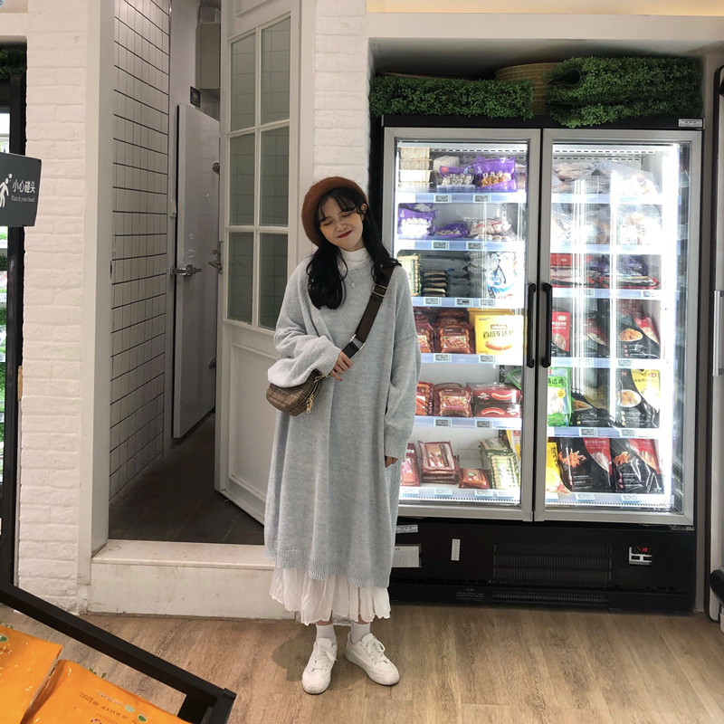 可可里小姐~長款過膝針織毛衣裙+褶皺雪紡半身裙 套裝