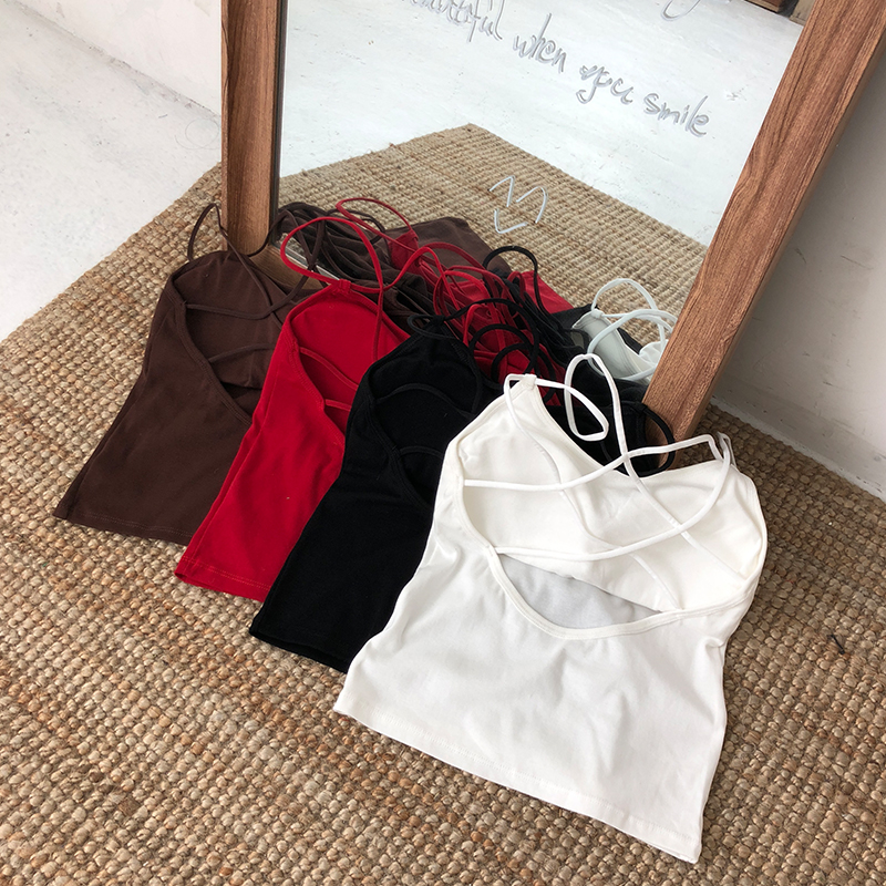 / 夏季韓版美背時尚吊帶背心女短款純色修身顯瘦外穿打底衫上衣學生