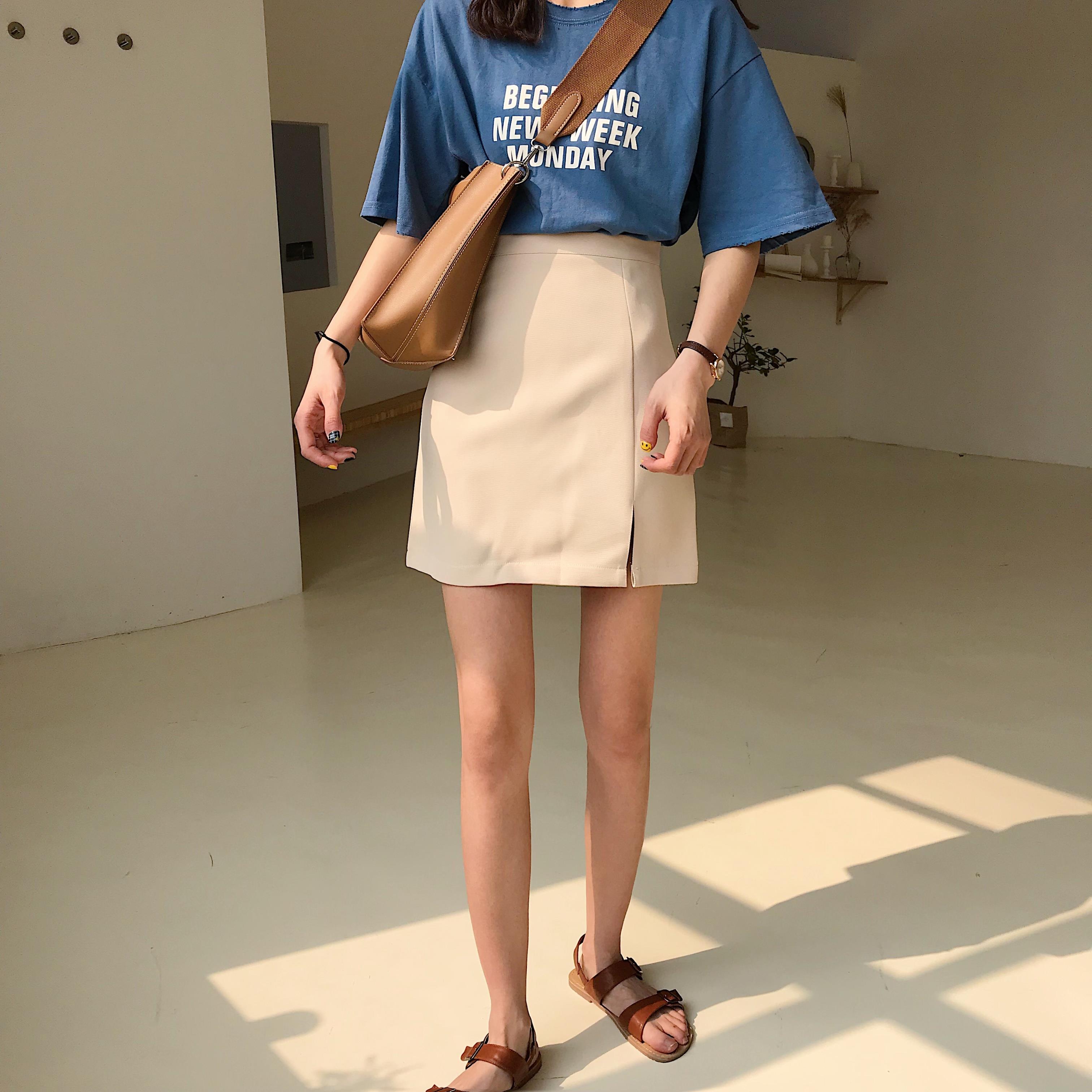 穿起來顯腿比例超好 顯腿長 下擺處有一個小開叉