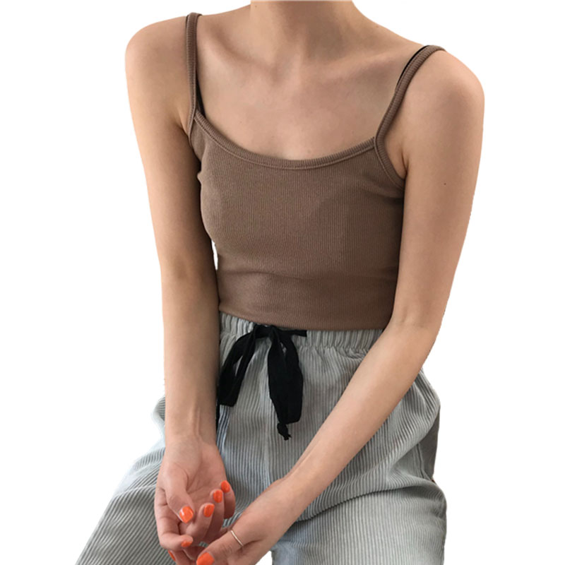 / 春秋女裝韓版彈力修身顯瘦糖果色外穿吊帶背心短款百搭打底衫上衣