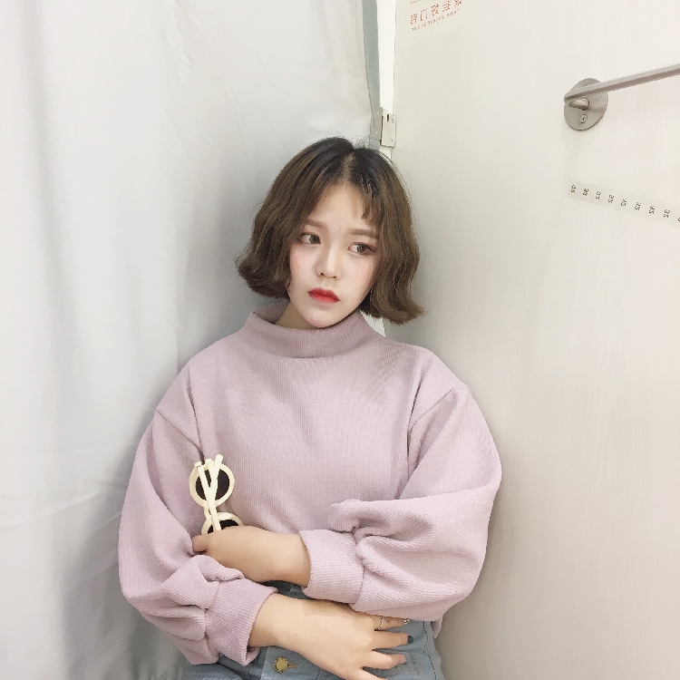 / 秋季韓版學院風小高領純色燈籠袖套頭衛衣學生寬松長袖上衣外套女