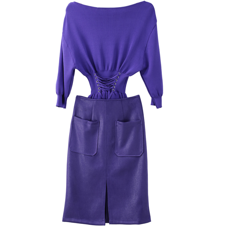 / 名媛2018秋季新款歐美套頭針織衫毛衣女長袖時髦半身裙套裝兩件套