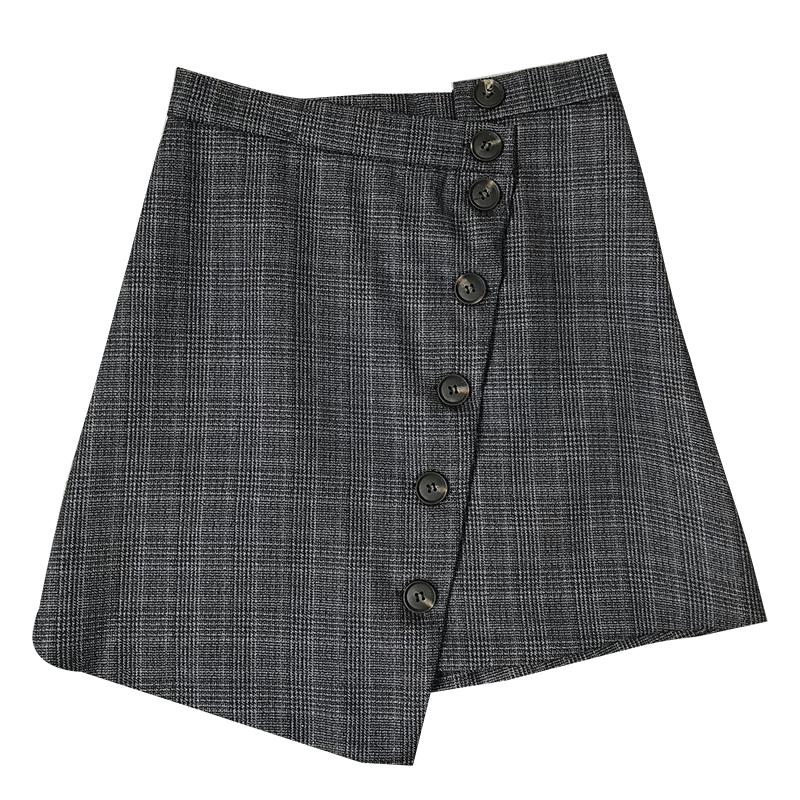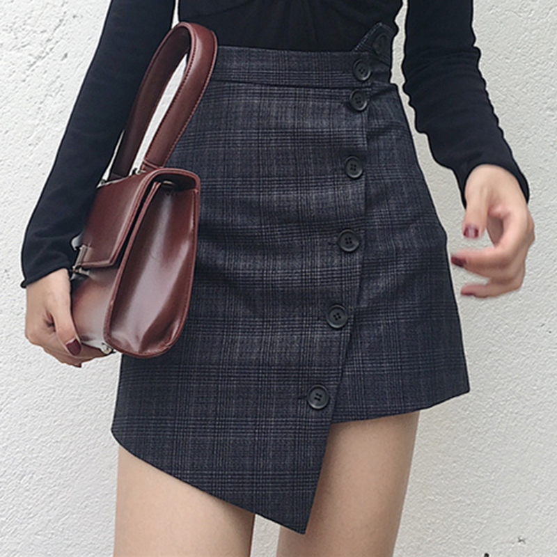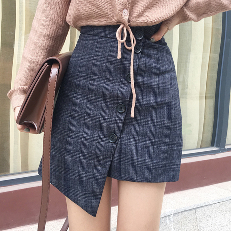 / 不規則半身裙早秋2018新款女裝復古氣質格子短裙高腰a字包臀裙子