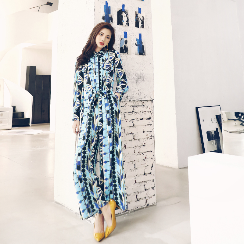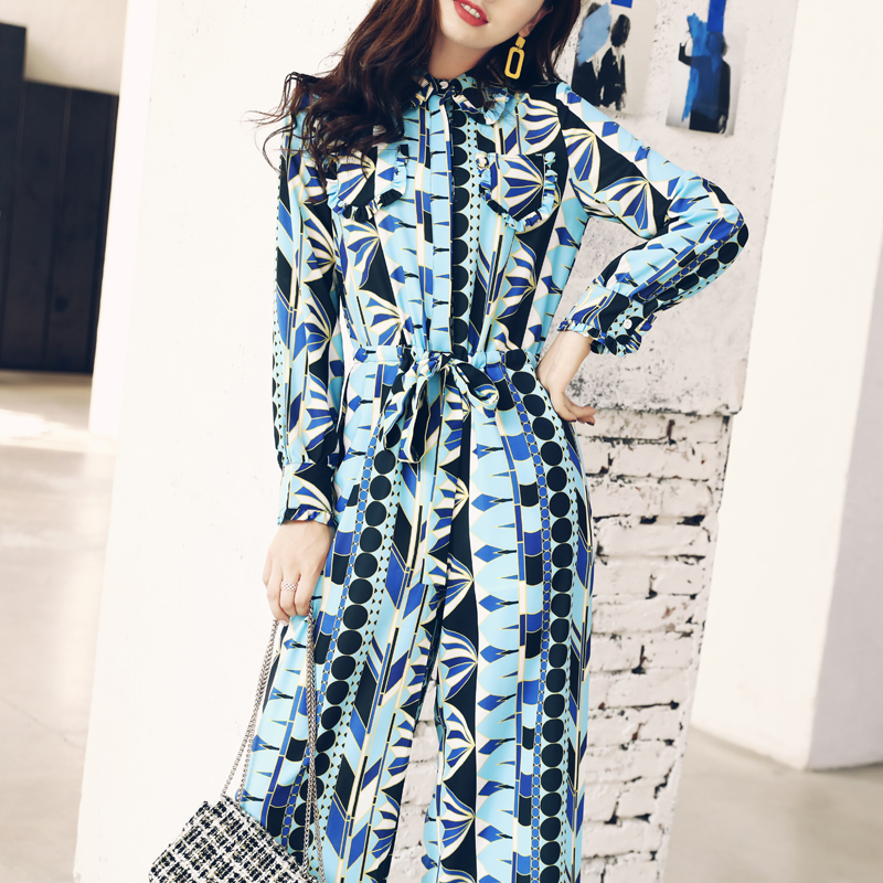 / 名媛氣質18秋季新款修身系帶闊腿褲時尚印花收腰個性網紅連體褲女