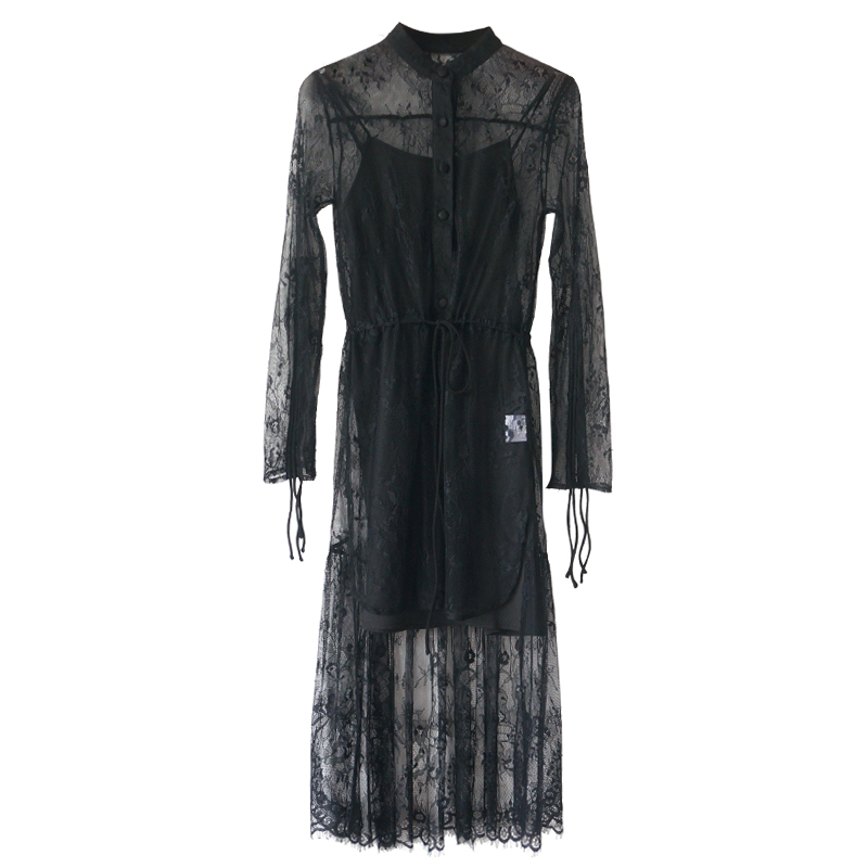S秀2018秋夏新款韓版時尚顯瘦氣質鏤空蕾絲連衣裙女中長款裙子