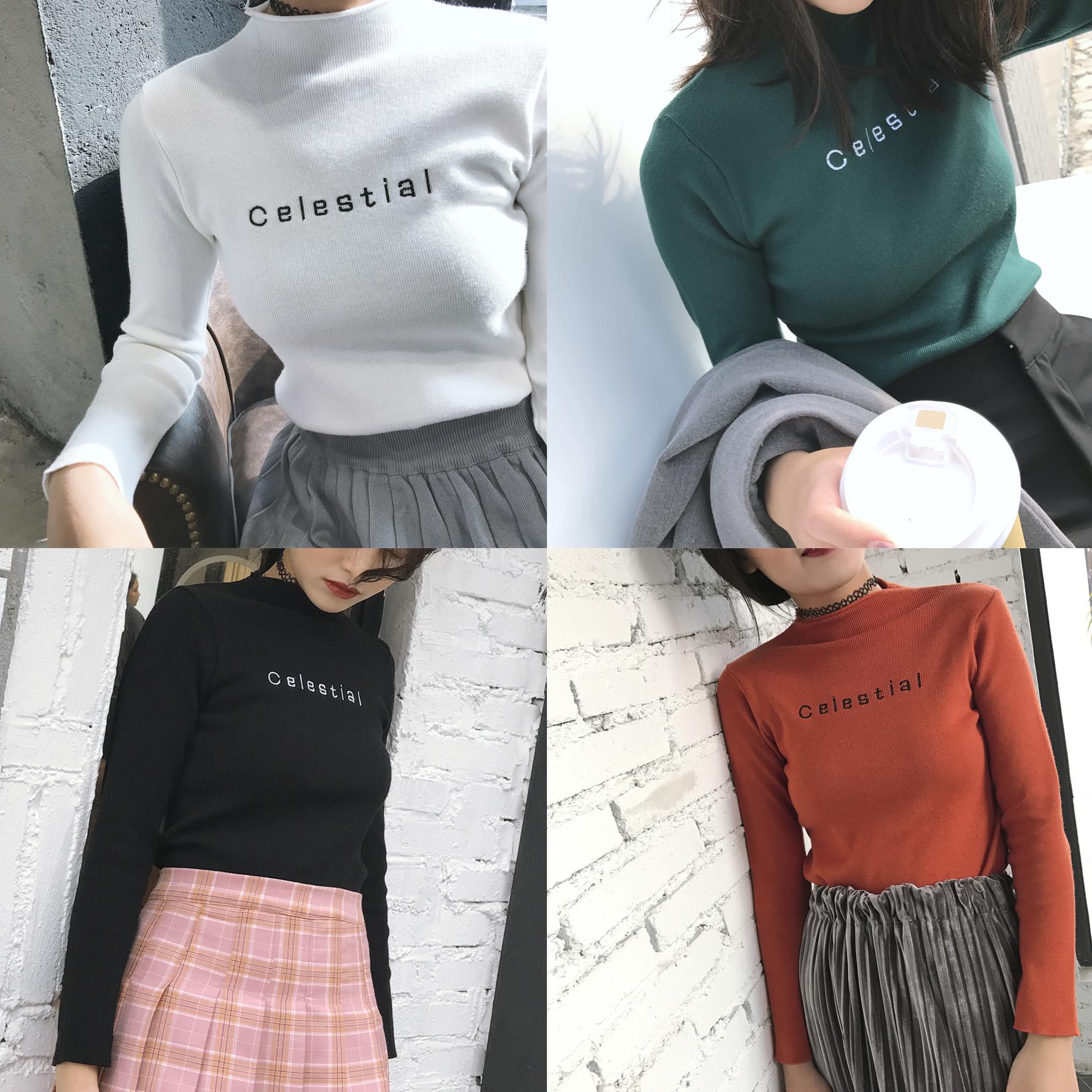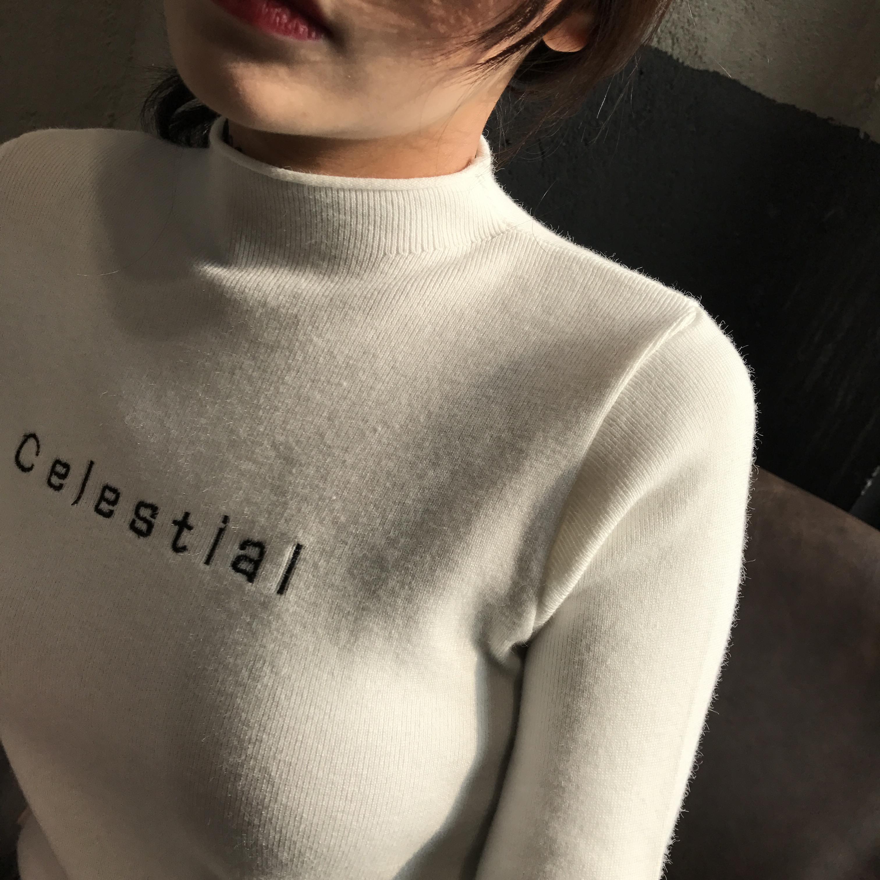 秋季女裝2018新款韓版修身顯瘦字母套頭打底衫針織衫長袖T恤上衣