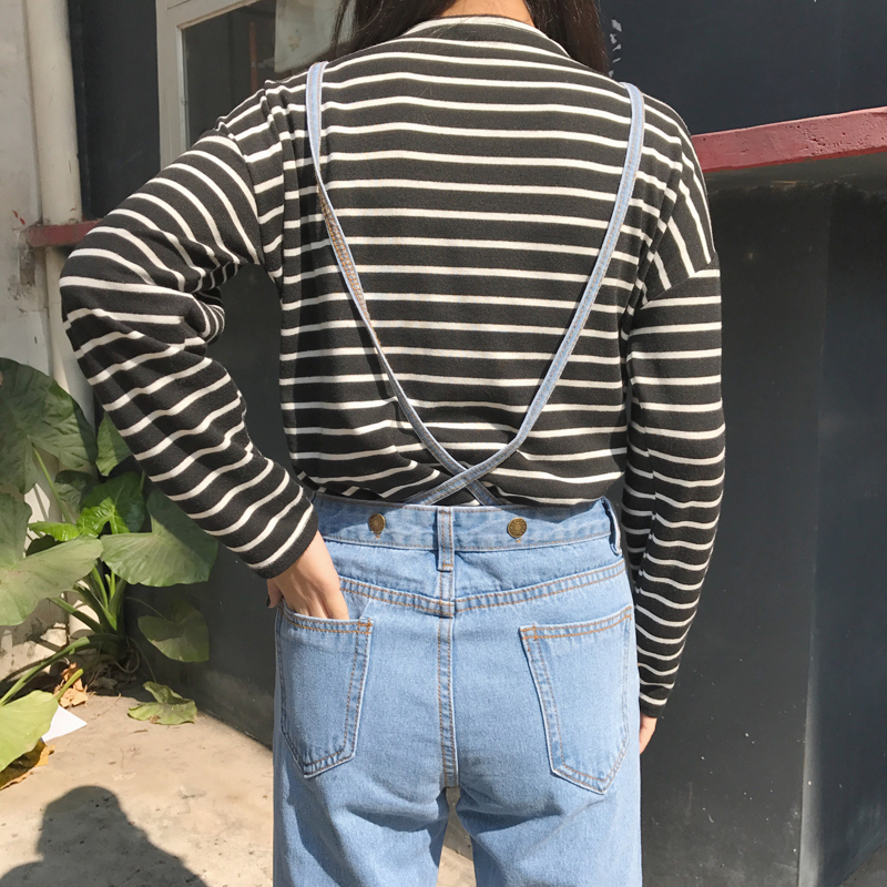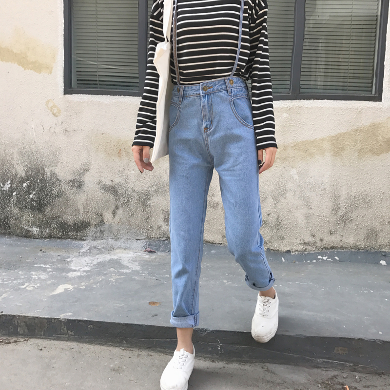 2018早春新款女裝學生高腰寬松顯瘦背帶牛仔褲九分哈倫褲吊帶褲女