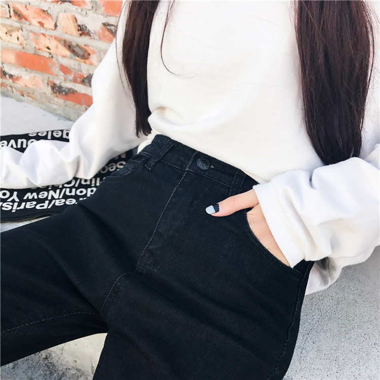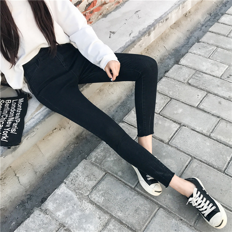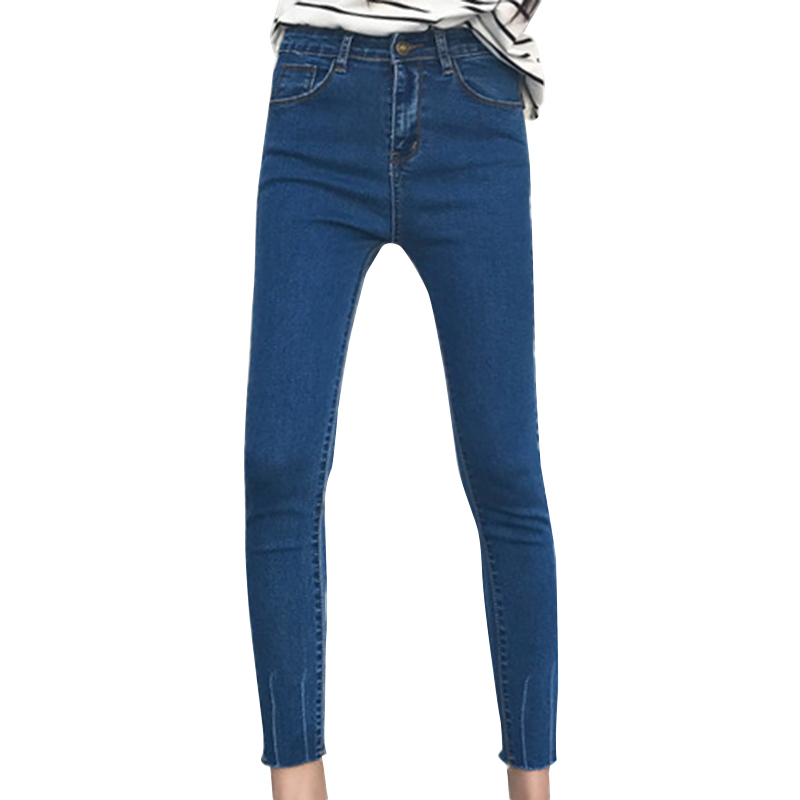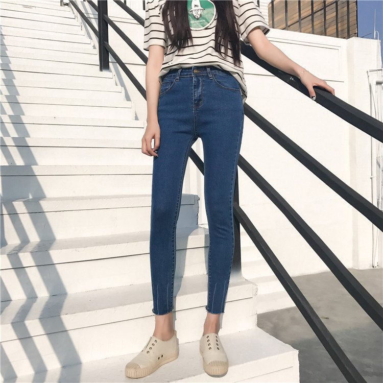 韓版女裝新款彈力緊身高腰修身顯瘦學生百搭小腳鉛筆九分牛仔褲