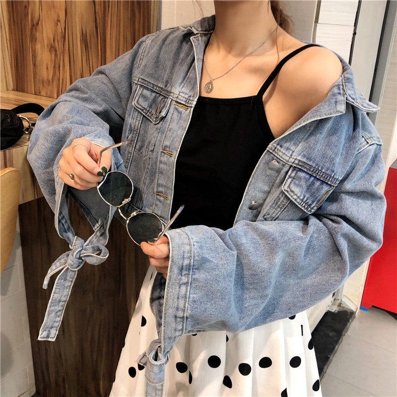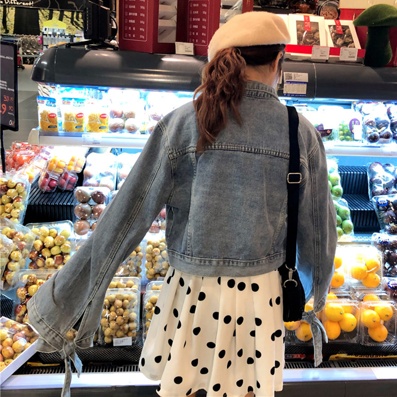 / 秋裝女新款韓版學生帥氣寬松短外套時尚街拍牛仔衫長袖綁帶上衣潮