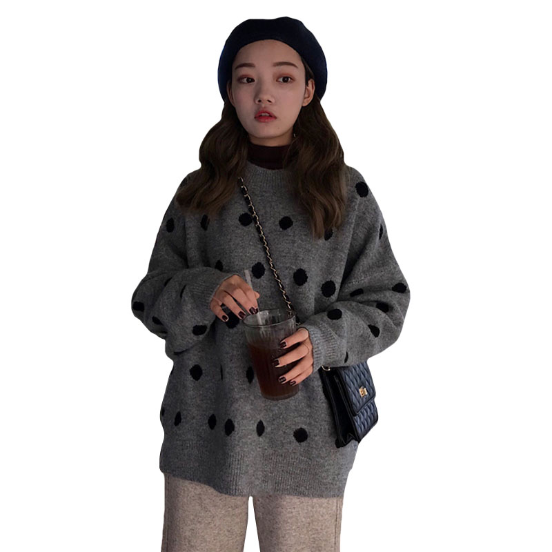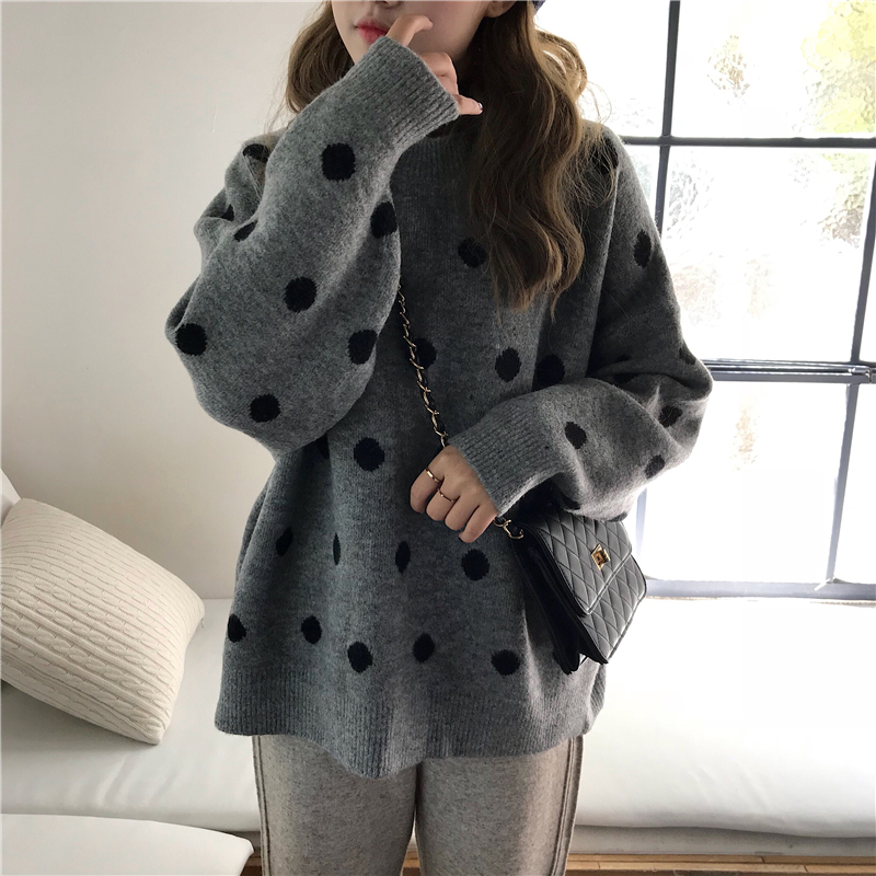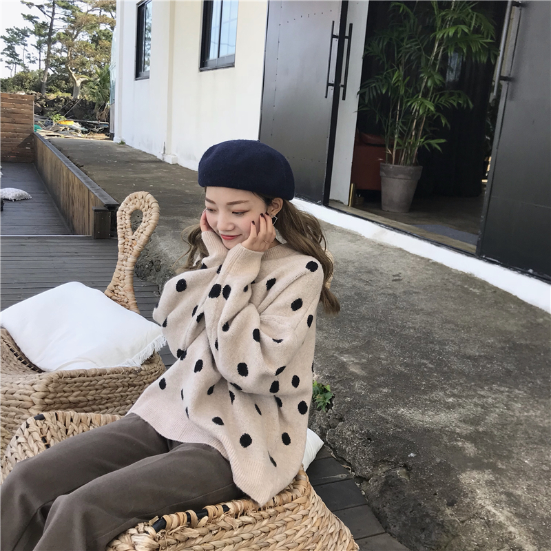 / 2018新款秋冬女裝韓版慵懶風寬松波點網紅套頭超火毛衣針織衫外套